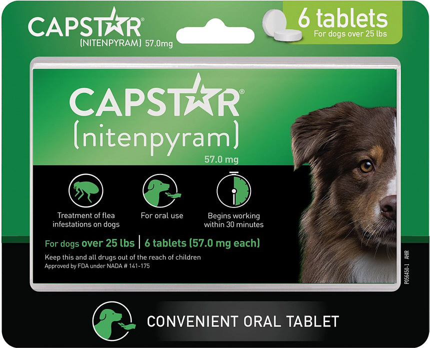Capstar (nitenpyram) is a fast-acting flea tablet for dogs and cats.