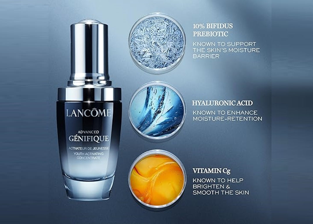 Advanced Génifique Serum improves elasticity and improves the appearance of fine lines caused by dehydration or due to thinning skin, which can eventually deepen into wrinkles. Used morning and night, Advanced Génifique serum visibly hydrates, plumps and evens tone to restore healthy, younger-looking skin in just 7 days*.