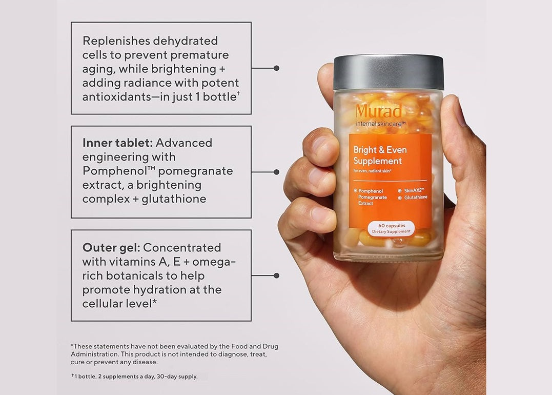 Murad Bright & Even Supplement prevents premature signs of skin aging from within.